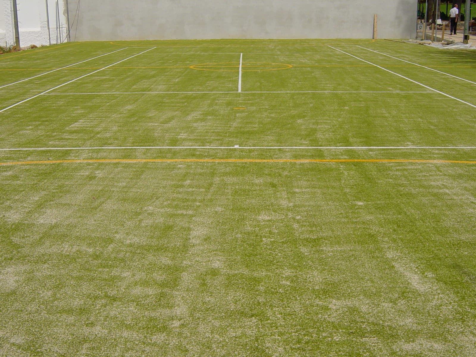 El uso del césped artificial en campos de fútbol logra un resultado natural y muy resistente, consiguiendo una gran durabilidad ante un uso intensivo así como una estética superior. La ejecución y señalización se llevan a cabo según norma.