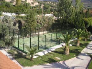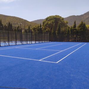 Instalamos canchas de tenis con terminación en césped artificial. La ejecución y señalización se llevan a cabo según norma.