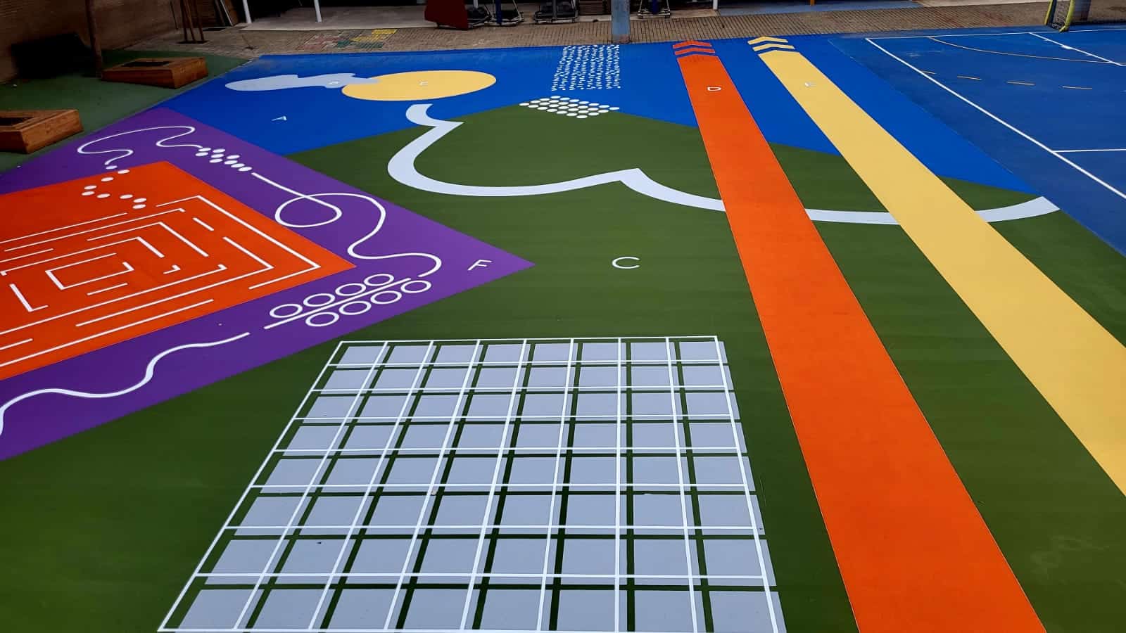 La gran versatilidad del pavimento a base de resinas consigue que no solo se puedan llevar a cabo deportes oficiales, si no que cada cliente puede elegir el diseño final del juego que quiera, con formas y colores de cualquier tipo.